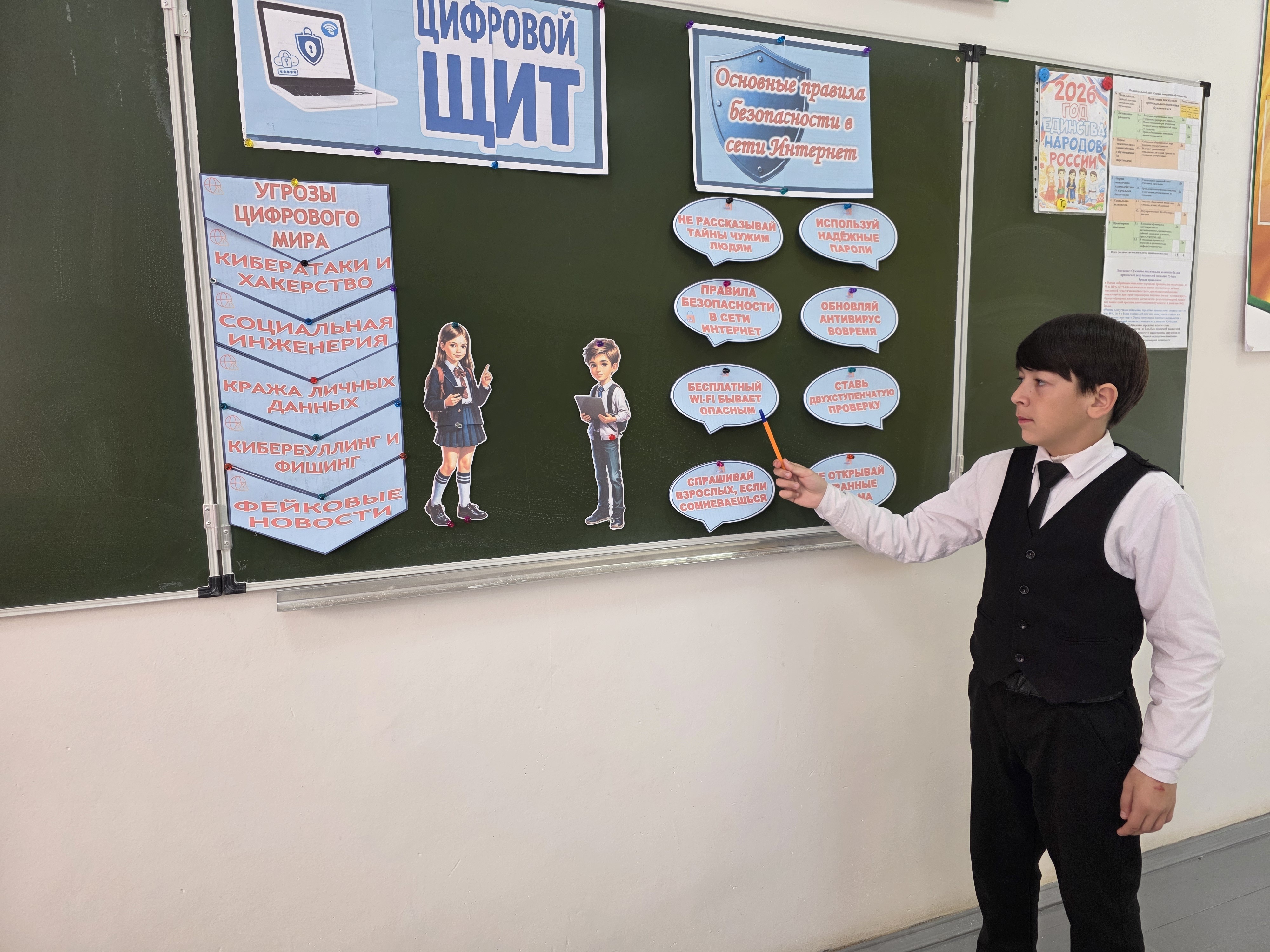 02.03.2026В понедельник, 2 марта, в МБОУ "Эникалинская СШ" состоялся очередной урок из цикла «Разговоры о важном». Тема занятия в начале весны посвящена цифровой безопасности и формированию ответственного поведения в интернете — «Цифровой щит. Основные правила безопасности в сети Интернет».Для учеников 1–4-х классов урок был построен в игровой форме. Ребятам показали короткий обучающий видеоролик о правилах поведения в интернете, где герои сталкиваются с опасными ситуациями в сети. После просмотра дети обсудили, почему нельзя сообщать незнакомцам личную информацию и как реагировать на тревожные сообщения.