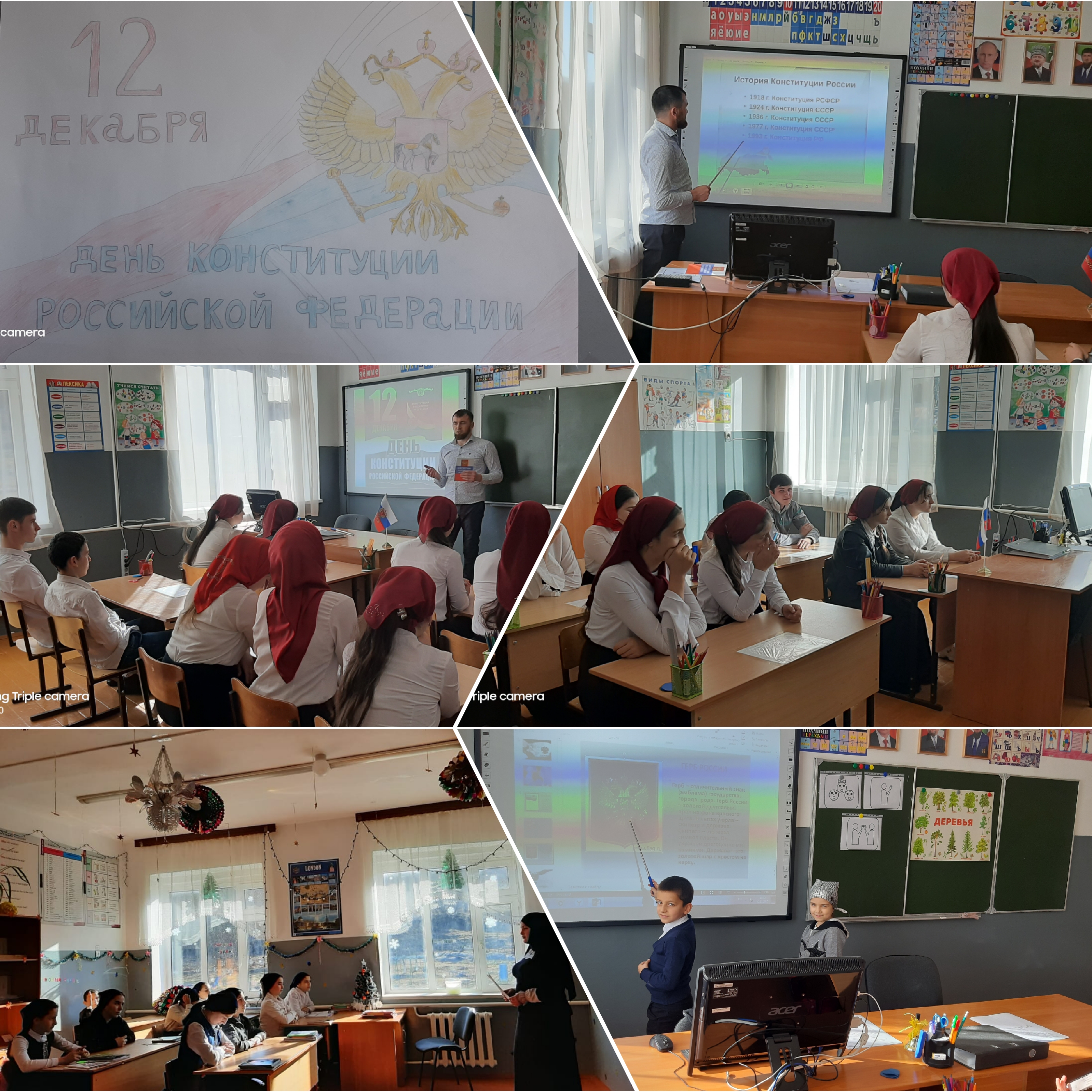 Во всех классах проведены конкурсы стенгазет и рисунков посвященные к Дню Конституции РФ. В конкурсе стенгазет первое место заняла газета подготовленная ученицей 7 класса Гагаевой Билкис. В конкурсе рисунков первое место заняла ученица 7 класса Этиева Марьям.