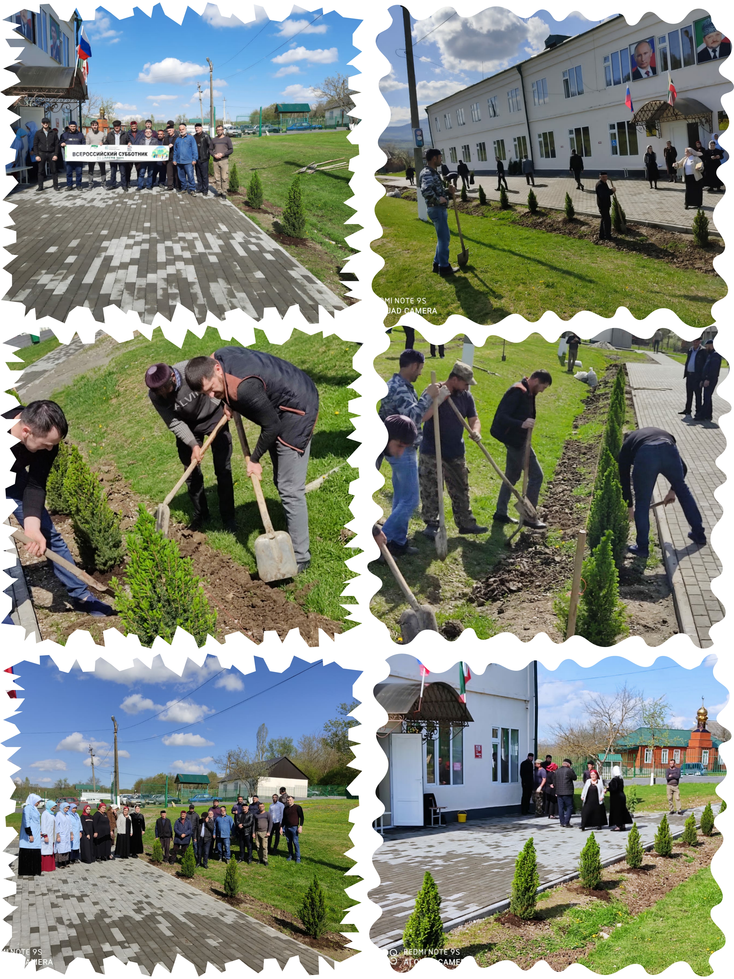 Представители УО Курчалоевского р-на и зам. директоров по АХЧ на территории школы высадили зеленные насаждения – деревья, 38 штук.