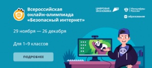 02.12.2022Всероссийская онлайн-олимпиада «Безопасный интернет» для учеников 1-9 классов пройдёт с 29 ноября по 26 декабря 2022 года. Олимпиада проводится образовательной онлайн-платформой Учи.ру и компанией VK при поддержке национального проекта «Цифровая экономика» и Минцифры России. Участие для всех школьников из всех регионов бесплатное.