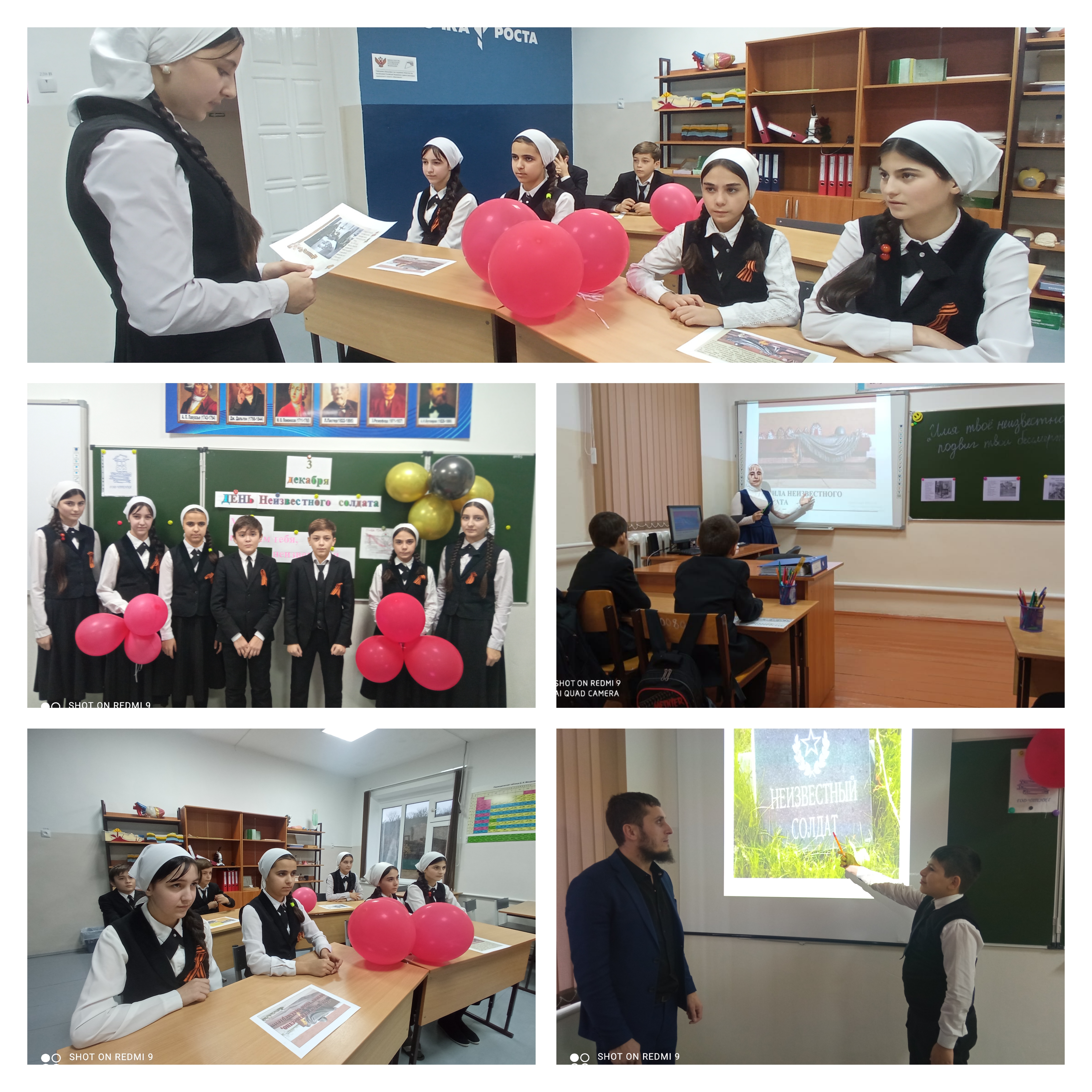 03.12.2022В рамках реализации федеральных проектов «Успех каждого ребенка» и «Социальная активность» национального проекта «Образование» с 01-03 декабря 2022г в МБОУ «Эникалинская СШ» был организованы внеклассные мероприятия, посвященные Дню неизвестного солдата. В данных мероприятиях были задействованы учащиеся 1-7 классов. Ответственные за проведение мероприятий Советник по воспитанию Докуев Саламу Солтаханович и классные руководители.