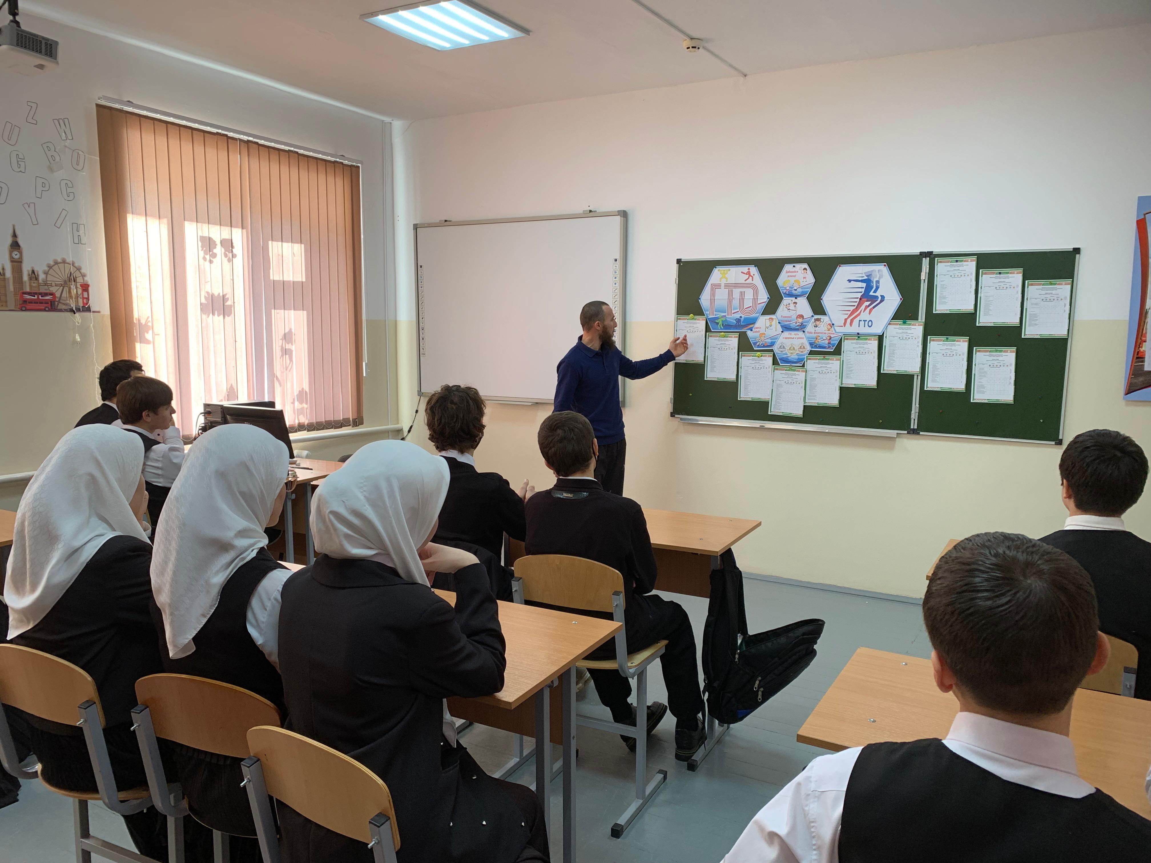 В рамках урока учащиеся ознакомились с историей становления комплекса ГТО, изучили его основных положения, сроки выполнения государственных требований комплекса, виды испытаний (тестов), порядок проведения тестирования в каждой возрастной ступени. Ребята посмотрели видео-презентации. В ходе бесед ученики узнали о важности комплекса ГТО в физическом развитии граждан и укреплении здоровья.