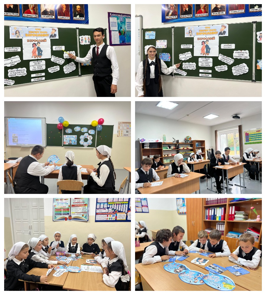 В ходе дискуссий за круглым столом, обучающиеся 5-8 классов разбирали ситуации, когда они сделали первые шаги на путь к взрослости. Анализируя свои поступки, ученики класса пришли к выводу, что быть взрослым, значит, быть не только самостоятельными и ответственными, но и заботиться об окружающих, о своей семье и нашей любимой стране.