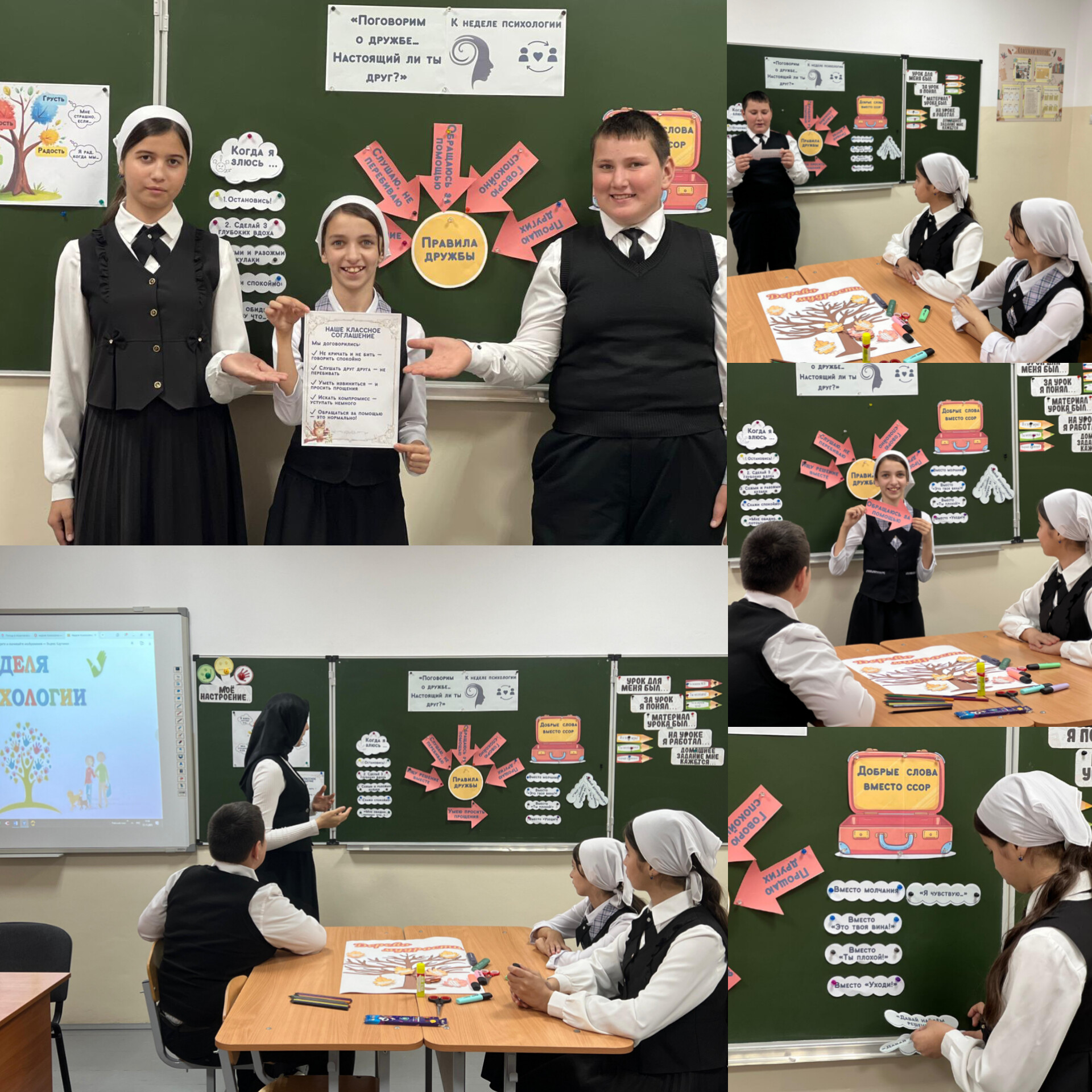 Классный руководитель рассказывала о ценностях дружбы: взаимном доверии, честности, поддержке в трудностях, уважении к мнению друга и умении прощать. Учащиеся активно делились своими историями — рассказывали о случаях, когда друзья помогли в беде, о качествах идеального товарища (доброта, весёлость, надёжность) и о том, как они сами проявляют верность в коллективе.