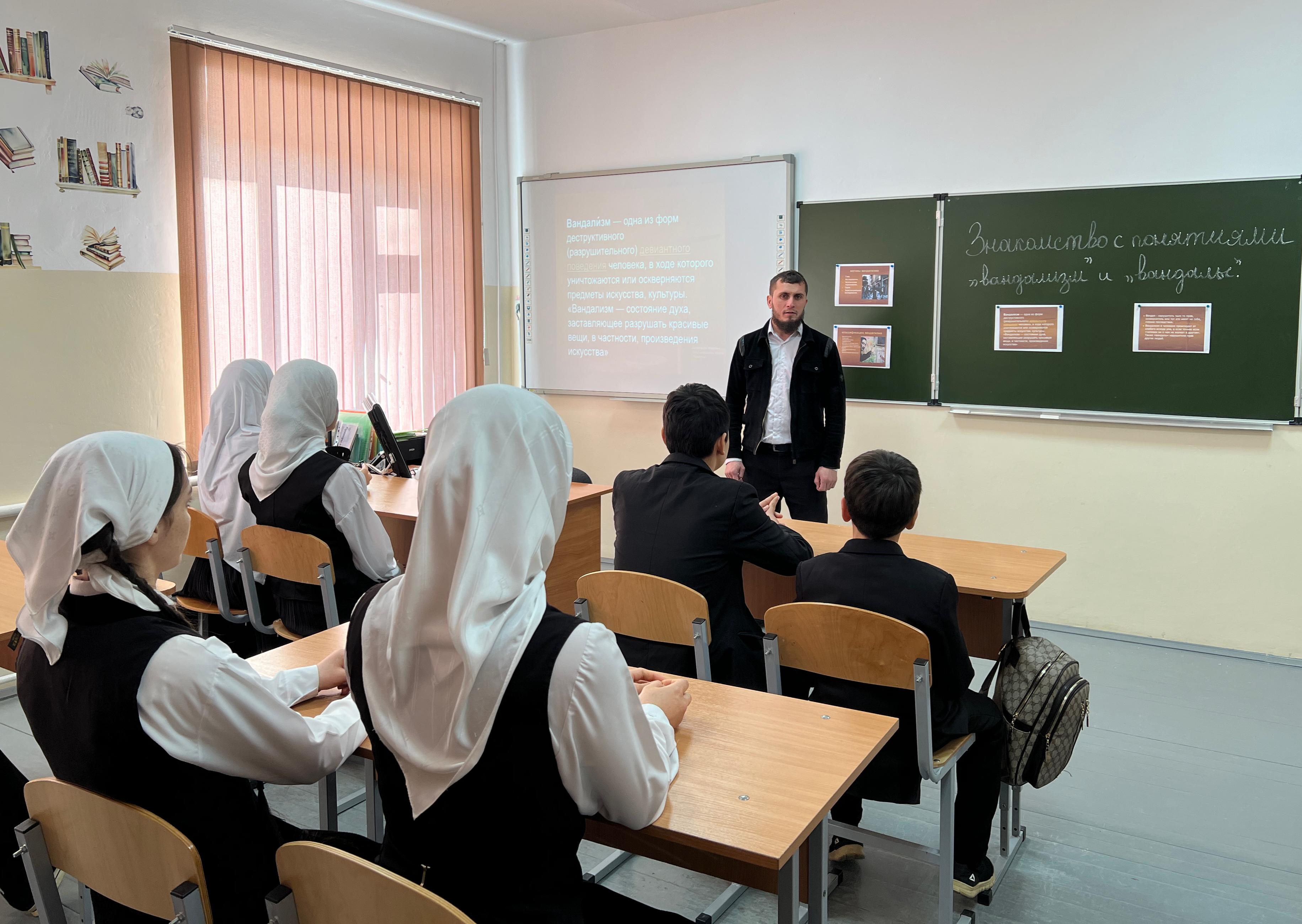 23.01.202623 января в МБОУ "Эникалинская СШ" среду учащихся 8-10 классов провели занятие, на котором с детьми обсуждали понятия «Вандализм» и «Вандалы». В ходе мероприятия участники высказали свои мысли о том, что такое вандализм, на что он направлен, кто такие вандалы и какие цели они преследуют.